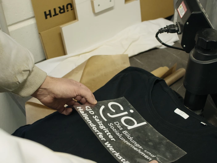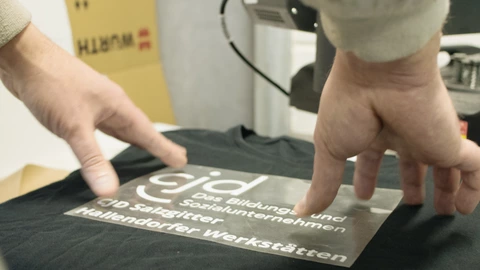 Du bringst Schriftzüge und Designs auf verschiedene Kleidungsstücke auf, zum Beispiel für Arbeitskleidung oder besondere Anlässe.